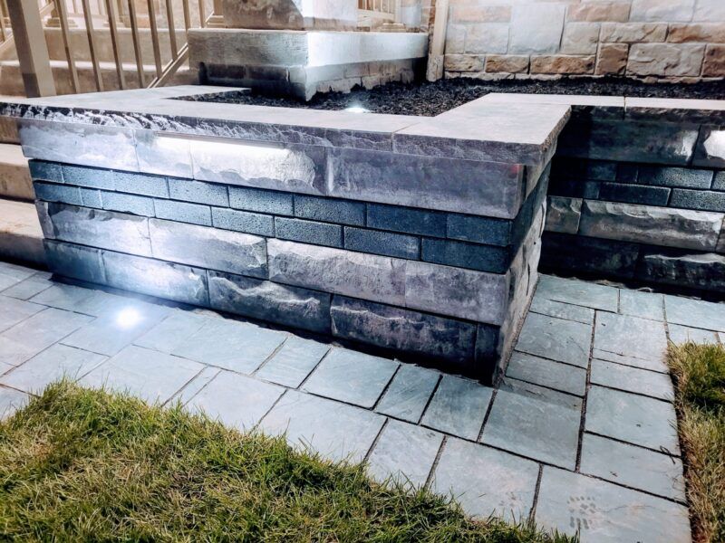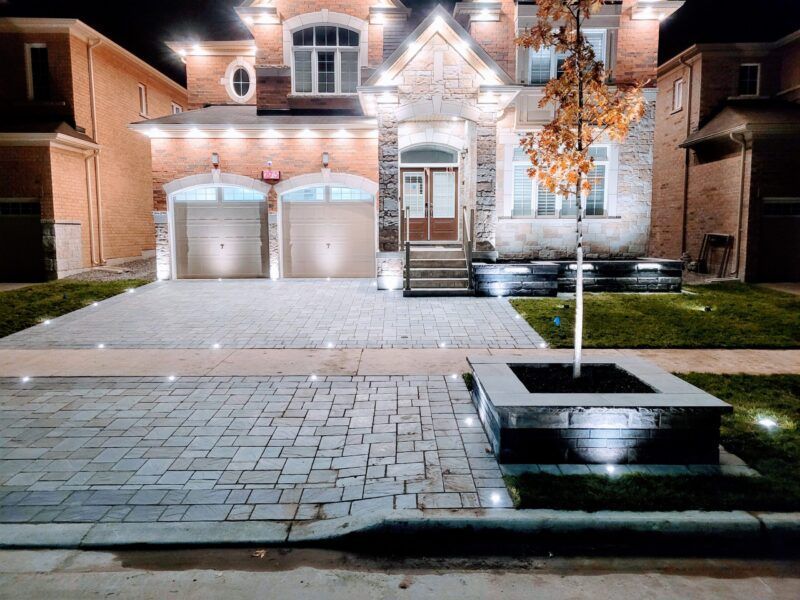 The entire driveway had interlock installed to withstand years of vehicle use. Along with this, lighting was installed to help create a beautiful and inviting entrance regardless of the time of day.